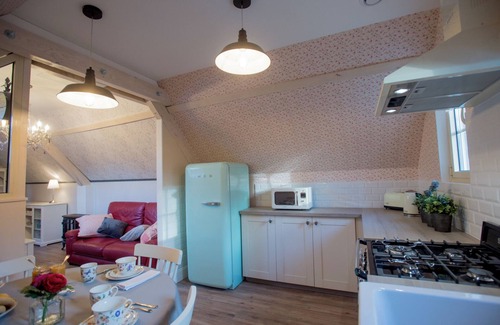 The stylish kitchen with its vintage look and high-end appliances is irresistible! But maybe you would enjoy grilling on the barbecue in the garden?