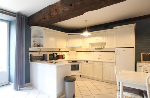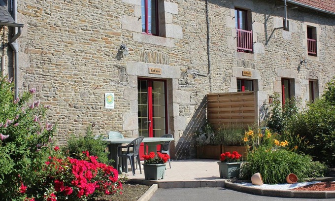 House adjoining another rental. On the ground floor: Living room with sofa (TV, Internet). Open fitted kitchen (oven, microwave, dishwasher, freezer compartment). Upstairs: bedroom 1 (2 twin beds 80x200). Bedroom 2 (1 bed 140x190). Shower room with WC (shower). Washing machine and dryer in the living room. Sheets provided and beds made on arrival. Towels for hire. Optional cleaning service. Electric heating at an additional cost. Unfenced grounds. Shared garden. Private terrace. Garden furniture. Barbecue. Parking for several vehicles. Two adjoining gîtes in the setting of an old character farm. Neat landscaping.