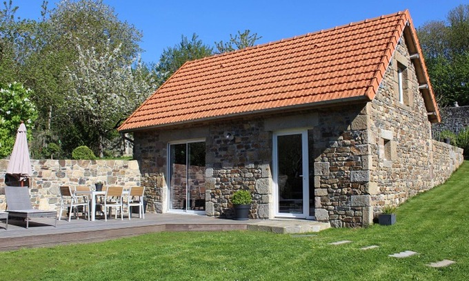 Detached house. Living room with fully equipped open kitchen (oven, refrigerator, dishwasher, microwave, coffee maker). TV. Shower room with toilet. Upstairs, mezzanine with 2 90x190 pull-out beds and a single extra bed, bedroom (1 140x190 bed). Wi-Fi. Baby equipment on request. Sheets and towels provided. Beds made on arrival. Cleaning service at an additional cost. No washing machine but the owners offer a laundry service if needed. Electric heating included. All charges included except electric vehicle charging not available (terminal 1 kilometer away). Private enclosed garden. Terrace. Garden furniture. Parasol. Barbecue. Pétanque court. Ping-pong. Bicycles available. Parking. Behind the porch of this former presbytery, you will succumb to the charm of this little house and its green setting. Very sheltered, this is a true corner of paradise that the owners Loïc and Corinne have created in this picturesque hamlet. You will particularly enjoy the lovely terrace extending from the kitchen and the surrounding garden. The upstairs mezzanine can accommodate a whole family with three single beds available in addition to the double bedroom. You can easily reach the center of the seaside resort on foot or by bike (the owners have hiking and mountain biking trail ideas available). Jullouville boasts one of the most beautiful sandy beaches in the region! A public electric vehicle charging station is 2 km from the cottage.