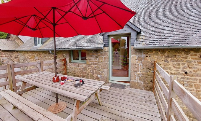 - Charming Cottage with Terrace Overlooking Stream and Hills, Near Fougères and Mont Saint-Michel