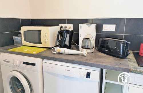 Stay from 3 nights: arrival 5 [hidden] - departure 10 [hidden] House on 2 levels, adjoining the owners' house, discreet - LEVEL 0: 29m² equipped kitchen (electric hob, oven, microwave, fridge and freezer compartment, coffee maker, toaster, kettle, blender, dishwasher, washing machine) - Separate toilet - 4 steps to access the dining room and living room of 29m² with direct access to the terrace.