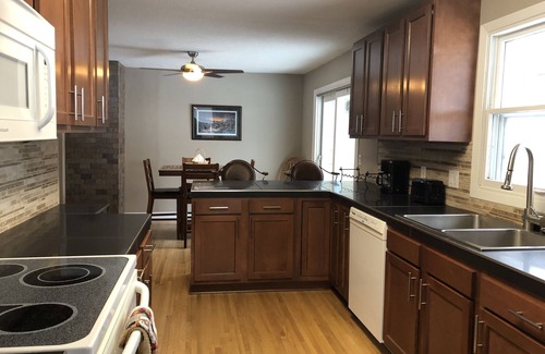 Single family home, 2 bedroom 2 baths completely remodeled, large 1 acre lot and views from the wrap around porch of Birch lake. Furnished nicely with many new furnishings, large private backyard with bonfire and grilling pit. Nice hiking trails nearby, many restaurants to chose from in the local area as well as quaint shopping in White Bear Lake. Maplewood Mall is 10 minutes away and both downtown areas are easily accessible for sports, shopping and many fabulous restaurants only 20 to 25 minutes away. Easy freeway access to 35 E or 35 W