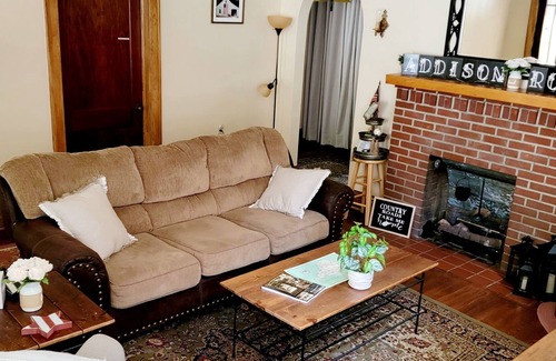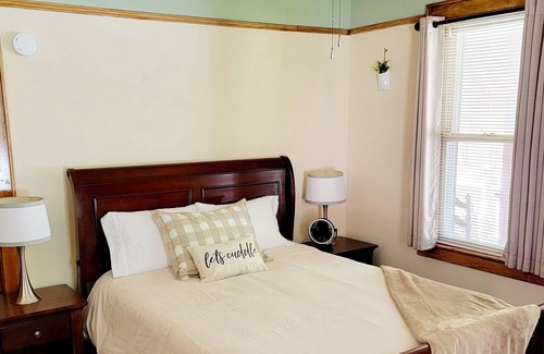 Enjoy your stay by relaxing on either of the covered porches of this beautiful brick 1930’s cape cod style home while listening to the Elk River. With fenced-in yard nestled in the heart of a country town, you'll feel right at home. 2 queen bedrooms, 1 bathroom with tub/rainfall shower, beautiful hardwood floors throughout and, modern fully equipped kitchen. Enjoy the porch swing, and rocking chairs, or help yourself to fruit trees when in season. Within walking distance to town.