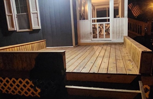 This private apartment in a duplex home with front porch is seperated by a wall to make two seperate accomodations. There is no access in between living spaces.