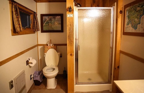 As charming as it is isolated, this little cabin has everything you need for a comfortable escape. Relax in the rocking chairs at sundown, listening to the birds chirp. Retreat to the interior where you'll find pleasant country décor, a warm fireplace, and plenty of entertainment. When you're done with the day, climb up the ladder to the loft and rest on the Queen bed. You'll appreciate the privacy of your full, indoor bathroom just steps from the cabin.