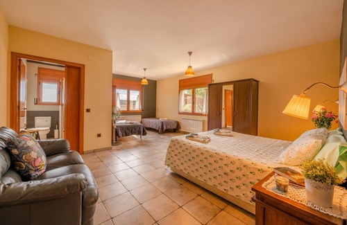 The house has 4 bedrooms, three beds (1 suite with bathroom and sofa bed), a double room (2 beds) and another bathroom with shower. It has a large central space with a modern and fully equipped kitchen, dining and living room with fireplace, stereo, TV and DVD. The house has mosquito nets and heating in all rooms.