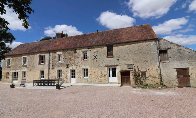 Detached country house. Ground floor: living room (table football), fully equipped kitchen with central island and American-style refrigerator, lounge with wood-burning stove, games room, shower room (puzzles, board games) with toilet, and laundry room. Upstairs (accessed via two staircases from the living room and lounge): 1 family bedroom (4 single bunk beds), 1 bedroom (160 cm double bed), bathroom with toilet, 1 bedroom (160 cm double bed), 1 bedroom (160 cm double bed), 1 bedroom (2 twin single beds), shower room, and separate toilet. Central heating. Large courtyard with terrace and enclosed garden. Bicycle and motorcycle storage. Shelter with ping-pong table. Children's playhouse and games (molki, bowling, etc.). Beautiful white stone farmhouse with original beams and parquet floors. The Gite de la Venelle is located in a quiet hamlet, 6 km from shops. Wi-Fi, Enclosed grounds, Garden furniture, Barbecue, Outdoor games, Terrace, Garden, Farm, Television, Freezer, Dishwasher, Tumble dryer, Washing machine, Microwave, Detached house, Sheets included, Heating included.
