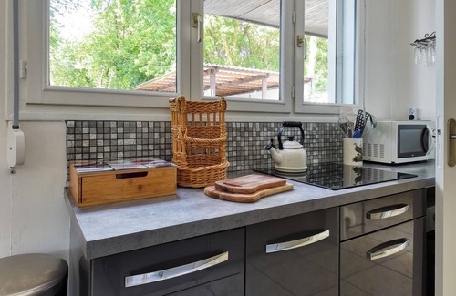Prepare a home-cooked meal in the kitchen, complete with an oven, a stovetop, and a refrigerator, as well as a coffee maker, an electric kettle, and a microwave. And thanks to the washer and dryer, you'll even be able to travel light.