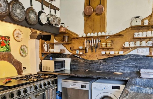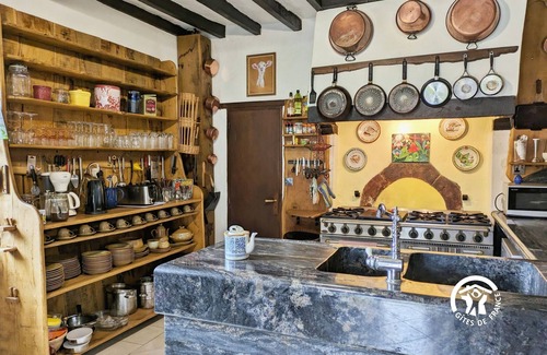 Warm welcome from Clare and Gary on site, with advice in French and English. PLEASE NOTE: The house is not certified as a Youth and Sport building or an ERP (public access establishment), so it is not suitable for stays for young people with supervisors. Independent house - Access via an avenue of old oak trees - LEVEL 0: Entrance - Kitchen 25m² with 6-burner stove & electric oven & gas oven, microwave, dishwasher, kettle, filter coffee maker, bodum, toaster, washing machine - Living room 36m² with sofa and armchairs, dining area, television, video cassette player and video library - Bedroom (1) 9m² with 2 bunk beds 90x190, storage - Bedroom (2) 12m² with 1 bed 160x200, wardrobe - Bathroom, shower, sink and toilet, heated towel rail, hairdryer - Separate toilet. LEVEL 1: Landing with armchairs - Bedroom (3) with cathedral ceiling, 16m², 1 queen-size bed and 1 single bed (90x190cm) - Interconnecting rooms: shower room / Bedroom 4 / Bedroom 5: Shower room with shower, 2 sinks, 1 toilet hidden by a wall - Bedroom (4) 23m², 1 king-size bed, storage, armchairs - Bedroom (5), English-style decor, 37m², 1 double bed (140x190cm), storage, lounge area.