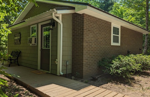 Small Charming Cottage set in a beautiful wooded setting. The big slider off the living room gives views of woods and nature. People who have stayed here have seen deer, raccoons, fox, woodpeckers, and listen to the sounds of whippoorwills in the evening. There is a small patio out back, with outdoor seating and grill, with a fire pit near by. It is Private and romantic yet still close to Silver Lake, Stoney Lake and Lake Michigan. Equipped with full kitchen, bath, and laundry.