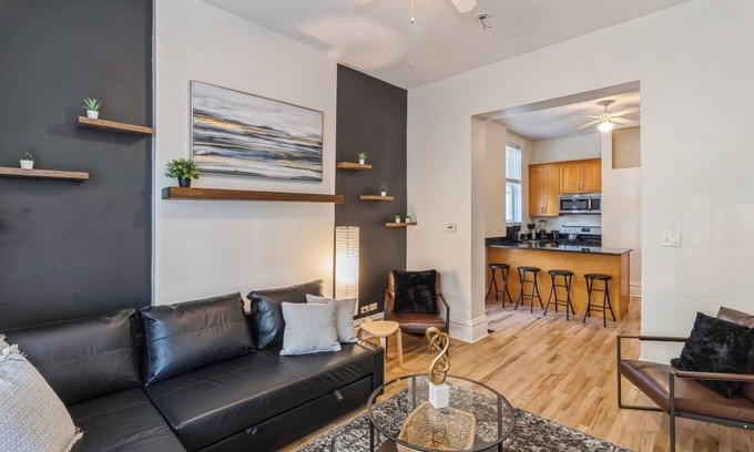Charming Cozy 2BR Haven w/Crib Near Hip WickerPark is located in Wicker Park. Charming Cozy 2BR Haven w/Crib Near Hip WickerPark provides accommodation, featuring Air Conditioner, Security/Safety, Fireplace/Heating, among other amenities. This Apartment features Air Conditioner, Security/Safety, Fireplace/Heating, to make your stay a comfortable one.