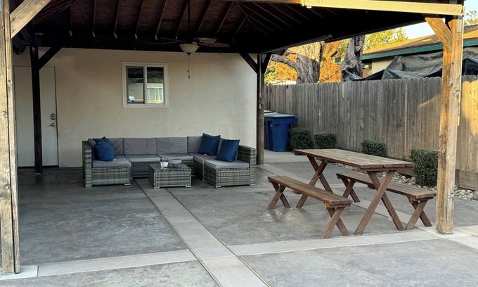 Escape to this beautiful house minutes from main route to Yosemite national park. With 3 queen beds spread across 3 bedrooms, this peaceful retreat offers 2 bathrooms equipped with a bathtub, shower, and bidet. Enjoy the convenience of amenities like a washing machine, iron, hair dryer, WiFi, AC, and heating. Immerse yourself in the gorgeous surroundings and make unforgettable memories with your loved ones and fur babies in a park like completely fenced in back yard. Feel free to reach out to us during your stay - we're happy to suggest local spots to check out.