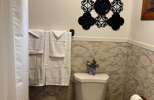 Enjoy the convenience of our complimentary WiFi during your stay and You Tube TV. The bathroom features a refreshing shower for guests.