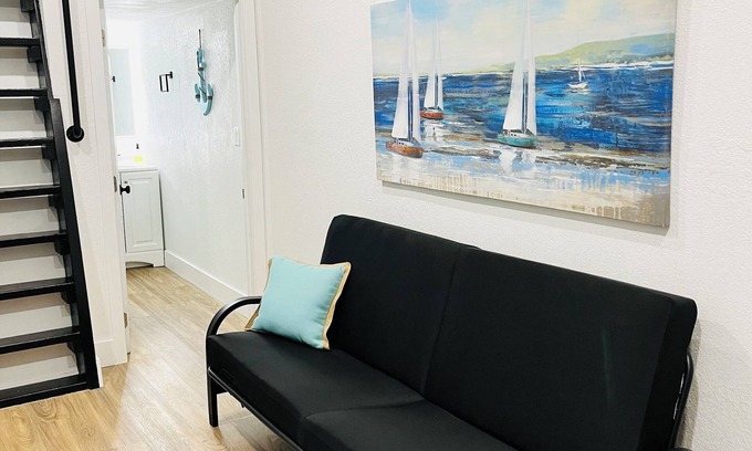 Escape to this enjoyable Tiny House in picturesque Homestead. This cozy retreat features a lofted 1 bedroom with a comfortable queen bed, a lovely living room with a sofa bed and a big screen tv. A full bathroom with a refreshing Spa Shower. A full kitchen fully stocked for all your cooking needs. Guests can enjoy amenities like a full Private front yard with seating, AC, WiFi, an iron, and a hair dryer. Relax in this gorgeous space and make the most of your stay. Feel free to reach out to us during your stay - we're happy to suggest local spots to check out.