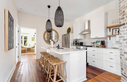 Stay in this spacious 6BR/6BA Charleston retreat, just steps from King Street. Each bedroom offers a king bed and ensuite bath, giving guests both privacy and comfort. With two full kitchens, multiple living areas, and off-street parking for 4 vehicles, it’s ideal for large groups or families. Enjoy modern amenities, luxury linens, and the city’s best dining and shops right outside your door.