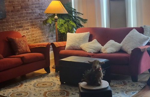 Built in the late 1800s, the building was extensively remodeled from 2012 to 2014, keeping the old time charm , but enhancing comfort and beauty. A comfy queen size bed, fully equiped kitchen, modern shower, surrounded by the natural brick walls. Very large screen tv, DVD player and Net flix is available, along with wifi. The wifi code is listed in the loft booklet.