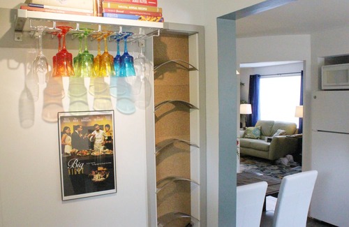 One of our goals for creating a unique vacation rental was to offer a variety of experiences within the rooms of the home. We converted the lion’s share of the garage into a home theater complete with a 70” TV, recliners, indirect lighting, hundreds of DVDs and an excellent surround sound system. We paid special attention to acoustics and sound insulation (there’s even an insulated exterior-grade door) so the theater wouldn’t disturb the rest of the house.