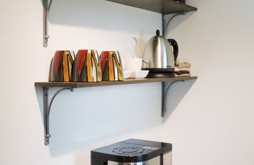 Around the corner from the living room is our lovely kitchen and dining area. We built in separate space for coffee, tea, and wine – you can spend a morning watching birds out the back window, in the shadow of the Marcus Whitman Hotel. The full-scale kitchen makes you feel right at home with all the amenities you need to dine in.