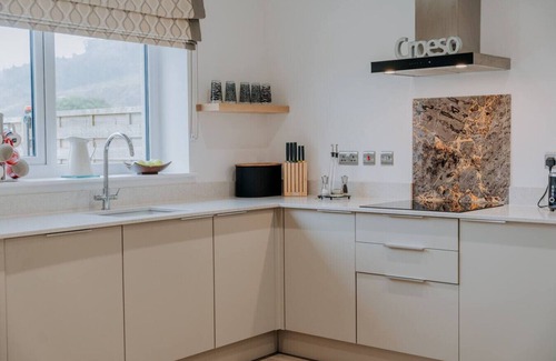 Inside, you’ll find a thoughtfully designed space that sleeps up to four guests comfortably across two cosy bedrooms. Each room is well-furnished, providing a restful place to recharge after a day of exploring. A modern main shower room serves the cottage, featuring contemporary fittings and a spacious walk-in shower.