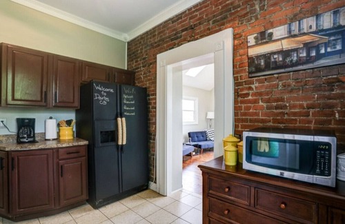 Welcome to our updated 1st floor 1800s duplex, located in the heart of 2023's top summer destination - Louisville. A stroll away from Churchill Downs, with UofL's baseball field as your backdrop. Enjoy a king bed, 2 twins, and den futons for extra guests. Cook in our stocked kitchen, laundry at your convenience. Relax on the deck, park worry-free off-street, and enjoy cozy evenings by the firepit. Close to the airport, this is your ideal base to explore or unwind in this vibrant city.