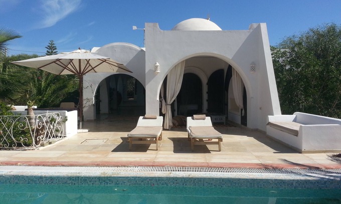 The villa and the swimming pool are located in the most beautiful part of the island of Djerba not so far from the center of the capital ... Houm Souk.(Djerba Tunisia) a few minutes walk from the seaside