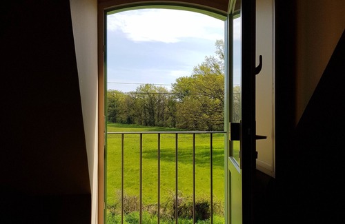 Upstairs, a large bedroom for 2 people (1 160 cm bed) with a view of a meadow and a large shower room / wc.