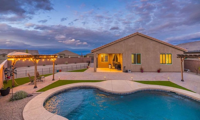 Your home away from home in Sahuarita, AZ with 3 bedrooms & Den with Tween sized Futon - Sleep 7. This adorable house offers a cozy retreat for guests looking to unwind and relax. With amenities like WiFi, Backyard Oasis with pergola, Large Screen, washing machine, you'll have everything you need for a comfortable stay. The 2 bathrooms ensure convenience for all guests. Our place is equipped for both long or short stays to make your holidays and/or Vacation one to remember.