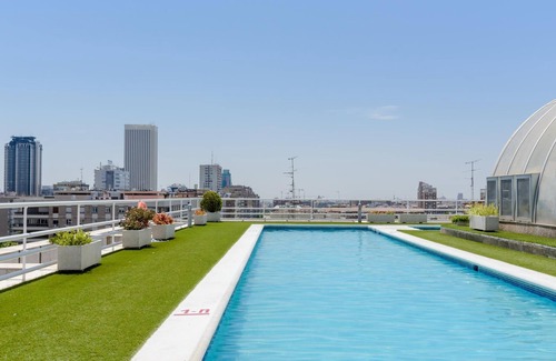 On the rooftop of the building you will find a spectacular swimming pool with a very genuine shape, which opens in the summer months. A perfect place to relax on one deck chair while having a drink at the pool bar.