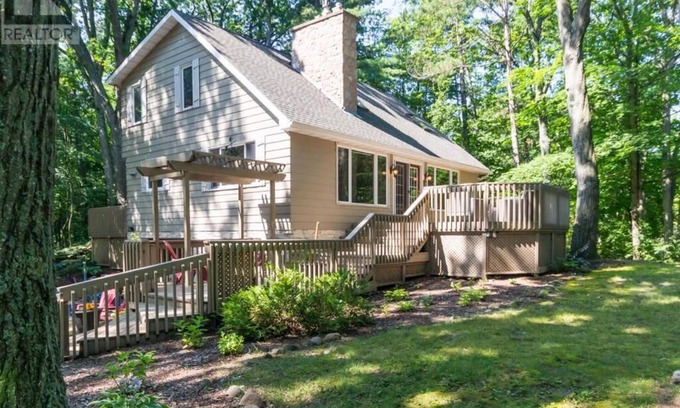 Inside, the cottage exudes cozy warmth and comfort, boasting multiple bedrooms to accommodate guests with ease. Every corner is thoughtfully curated to foster relaxation and togetherness, from ample living spaces adorned with rustic accents to the well-appointed kitchen ready to inspire culinary adventures. For those seeking additional entertainment this cottage is a mere 25 minute walk to Grand Bends downtown amenities. Water sports, dining, souvenirs, mini golf, ice cream, and much more await!