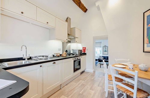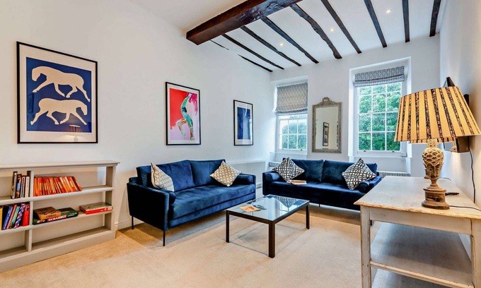 The Haven is a much loved Cotswold holiday home which sleeps four guests, in two inviting bedrooms, with one bathroom. This duplex apartment is laid out across the first and second floor of a beautiful Grade II listed building dating back to the 18th century. Many of the charming period features have been retained with exposed wooden beams, high ceilings and stunning sash windows throughout. The spacious sitting room boasts ample seating areas with sumptuous sofas and pretty window seats, ideal for relaxing after a long day exploring the diverse array of attractions across the Cotswolds. On warmer days, the private patio makes for a lovely spot to soak up the sunshine. Furnished in a contemporary yet comfortable style, The Haven is perfect to share with family or friends, living up to its name, providing a true haven in bustling Chipping Norton!