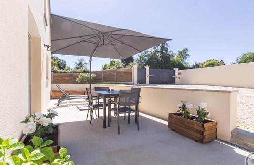 1 bedroom on the ground floor, TV, Washing machine, Dishwasher, Microwave, Freezer compartment, Sheets provided, Baby equipment, Enclosed land, Internet access, Garden furniture, Barbecue, Parking, Terrace, Garden, House, Individual house, optional cleaning service.