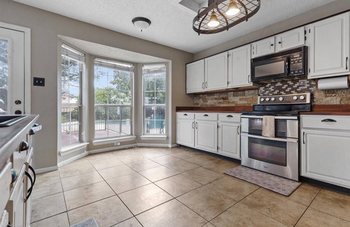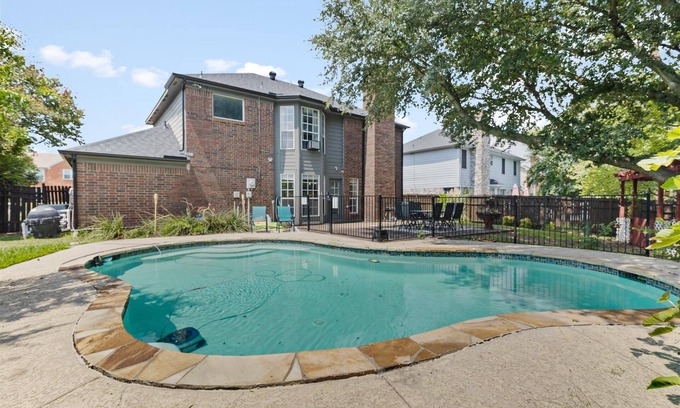 Relax with the whole family at this peaceful property just outside Dallas/Ft Worth. This delightful home sleeps up to 8 and boasts comfy living spaces, a spacious kitchen, and a backyard pool. Mansfield offers the best of both worlds in being close to the big city, minutes from stores and dining, and yet maintaining a small town feel with friendly neighbors and easy to navigate streets. 35 minutes to DFW airport, 25 minutes to Six Flags, 40 minutes to downtown Dallas, 20 minutes to Midlothian and Waxahatchie.