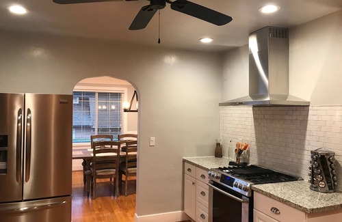 Beautiful modernized 2 bed 1 bath 1930s farm house minutes from downtown. Full amenities, including Internet, Wifi, ethernet, Smart TV, large kitchen with gas range, family style dining room, large living room, washer, dryer, dishwasher, AC, central heat, original hardwood floors. This is a dual living arrangement with two completely independent and private homes. Guests enjoy complete privacy with separate keyless entry. Nearby find Willamette University (5 Minutes), Corban University (9 Minutes), Salem Hospital (5 Minutes), Salem downtown (6 Minutes), numerous wineries and breweries and easy I-5 access. Centrally located: less than one hour to the Oregon Coast, Corvallis, Eugene, and Portland.