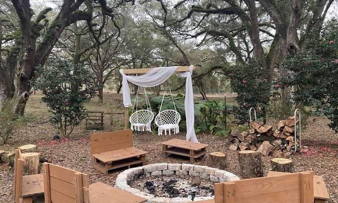 Relax with the whole family at this peaceful place to stay. Our beautiful farm has over 100 Oak trees forming a gorgeous canopy that will give you the feel of being in an enchanted forest. Roast marshmallows in our firepit, take a stroll through our forest, catch butterflies, zip wine while watching the sunset. You will not want to leave!!! We are close to many of the famous Florida Natural Springs. Explore away during the day and come back and relax in this little piece of heaven. For Horse lovers, we are 20 mins from WEC and 10 mins from HITs. Stables available upon request.