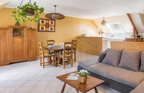 In the heart of nature, close to the beaches, in a former 18th-century farmhouse, peace and quiet await you in this bright, upstairs gîte (access via an external staircase). Two other gîtes and owners are also on site.
