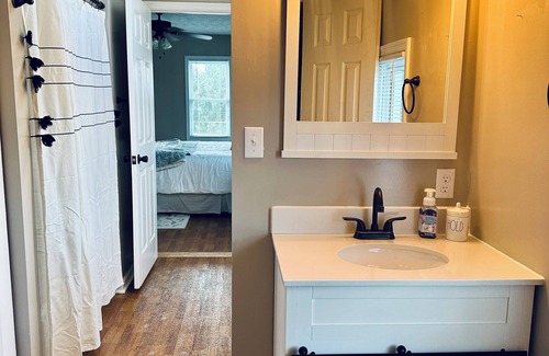 - Spacious Accommodations: With a king bed, queen bed, and futon, this farmhouse comfortably sleeps multiple guests, making it ideal for wedding parties or family gatherings.