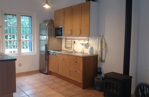 The main house is about 110 square meters and has a 25 square meter annex. In total there are 5 bedrooms with 3 double and 3 single beds, and 3 bathrooms with showers. Both houses have fully equipped kitchens, each with a refrigerator, freezer, cooker, microwave and dishwasher. Oven and washing machine are in the house. The property is suitable for one or two families. Both houses are equipped to be used all year round with air condition and heat exchangers, and a wood stove in the large house. The lot is 480 square meters, and has several terraces, a small lawn and an outdoor shower. There is a barbecue grill, garden furniture for 12 people and a couple of sun beds. The garden has several trees that provide shade when needed and is surrounded by a hedge and wall. A staircase leads to a roof terrace with a nice views of St Cyprien, the beach and the Pyrenees.