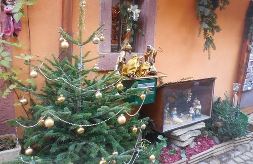 Charming flat in heart of bulwarks Polychromatic wooden ceiling is located in Eguisheim. Charming flat in heart of bulwarks Polychromatic wooden ceiling provides accommodation, featuring Parking, Wellness Facilities, Fireplace/Heating, among other amenities. This Apartment features Parking, Wellness Facilities, Fireplace/Heating, to make your stay a comfortable one.