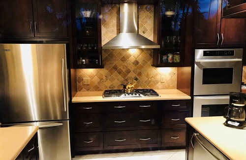 Benefiting from a modernized kitchen ready to cook family meals with new appliances.