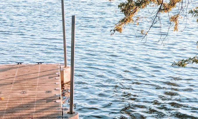Travel down to the waterfront by way of the rustic rock stairs behind the garage or take your car down the side road, allowing access to the lower level of the lot with lake access with pier and firepit. Perfect for fishing, swimming, and roasting marshmallows.