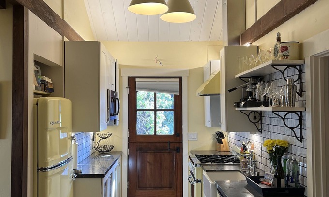 Located in the "Heart" of Carmel-By-The-Sea, Our 2 Bed 2 Bath apartment, that sleeps up to 6 people, is in such an amazing location, central to downtown Carmel. Offering a French feeling from the exposed beams to the citron-colored, warm kitchen. The space is quaint and cozy, perfect for a beach-town getaway.