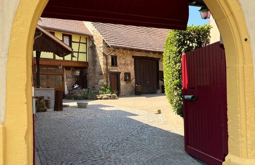 Charming gîte, former wine estate, sleeps 13 is located in Orschwihr. Charming gîte, former wine estate, sleeps 13 provides accommodation, featuring Pet Friendly, Security/Safety, Bedding/Linens, among other amenities. This House features Pet Friendly, Security/Safety, Bedding/Linens, to make your stay a comfortable one.