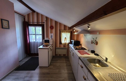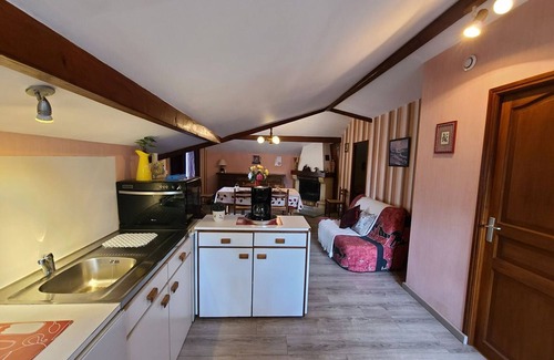 Pleasant and well-equipped cottage. Convenient location, ideal for tourists. Calodaé Thermal Baths in Plombières-les-Bains are 2.5 km away. Épinal is 35 km away. Gérardmer is 40 km away (lake, La Mauselaine ski resort). Remiremont (TGV train station) is 15 km away. Independent cottage on the first floor of a detached house. Separate entrance via an external staircase. First-floor cottage: 1 bedroom (1 double bed, 1 baby bed). Living room with sofa (double sofa bed). Kitchenette, dining room, TV outlet. Shower room. Toilet. Electric heating. Garage. Balcony, large shared garden. Utility charges included.