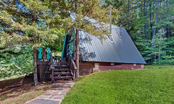 Charming gingerbread A-frame situated on 3 acres, woodstove, A/C, deck | House in Windham