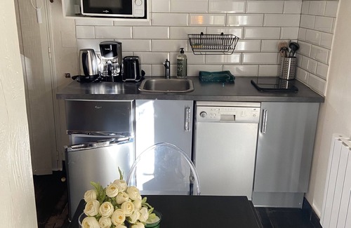 As you settle into this 1-bedroom, 1-bathroom rental, you'll find a sofa bed and air conditioning. Bathroom amenities include a hair dryer, towels, and toilet paper. The kitchenette is equipped with a stovetop and a dishwasher, as well as a coffee maker, an electric kettle, and a microwave. And because there's access to laundry facilities, you can go a bit lighter on your packing.