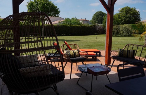 - Embark on a BOHEMIAN AND NATURE GETAWAY where authenticity and refinement mingle... This promise is that of the "Les Bohémielles" estate, a superb estate with large park and SWIMMING POOL, surrounded by countryside and vineyards, less than an hour from Bordeaux!