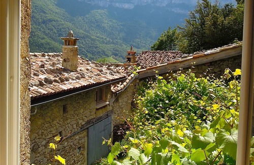 In an exceptional setting, facing the spectacular Bournillon cirque and its waterfall, and near the famous caves of Choranche, the "L 'Echappée en Vercors" gîte is nestled in an 18th century hamlet in the heart of the Vercors Regional Natural Park .