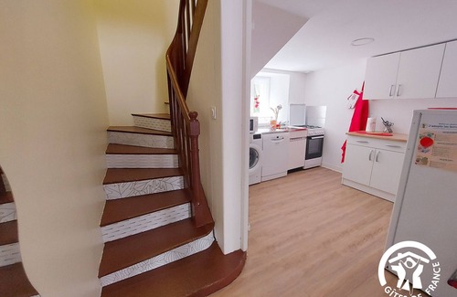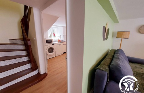 Stay from 3 nights: arrival 6 [hidden] - departure 11 [hidden] The cottage is at the entrance to the village of Andouillé, a town of 2,300 inhabitants, 500 meters from shops and services. On the ground floor, ceiling at 1.95m: living room 12.1m² with dining table and chair, sofa bed, TV - kitchen 8.3m² with dishwasher, refrigerator and freezer compartment, 4-burner gas cooker and electric oven, microwave, kettle, Senseo pod coffee machine, multifunction robot, washing machine. 1st floor, standard height ceiling: bedroom 13.7m² with 1 bed 160*200, wardrobe and desk - bathroom 5.6m² with shower cubicle, sink, hairdryer, towel dryer, clothes horse.
