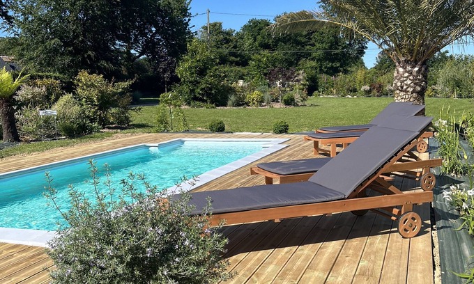 Independent house. 2 Living rooms including one with a fireplace and dining room, Separate kitchen. 2 bedrooms: 1 bedroom 160, a quadruple room: 1 bed 140. 2 beds 90 + 1 cot. Bathroom with double and double sink. 2 toilets. Wood stove. TV. Internet wifi. Washing machine. Dryer. Dishwasher. Beds made on arrival. Linen provided. Housekeeping service. Electric heating. Garden Lounge. Barbecue. Outdoor games for children
