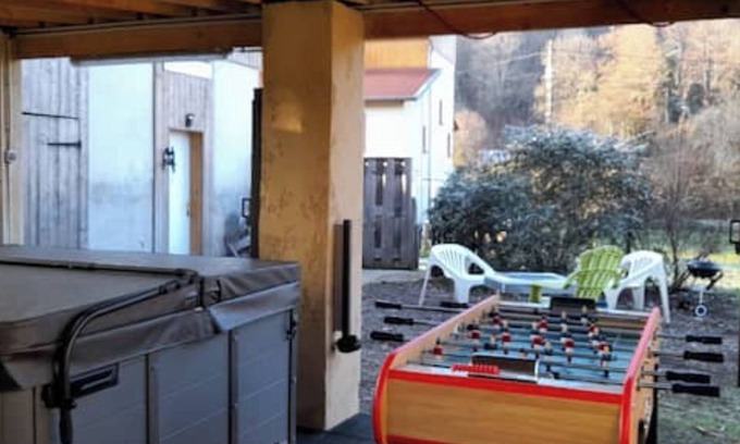 Relax in the hot tub (enjoy the outdoor furniture!) or sip a drink in the garden of this vacation home. As for the great indoors, you can try your hand at foosball, or enjoy the WiFi and TV.